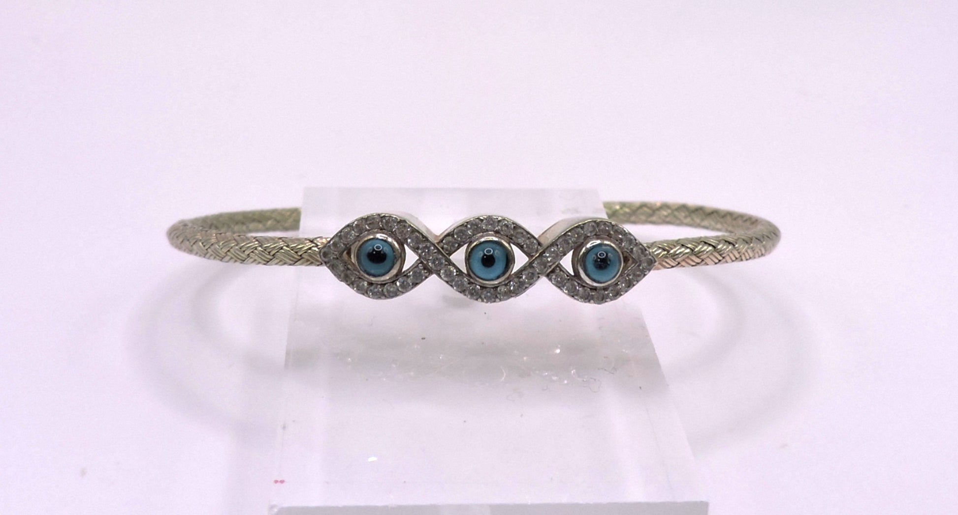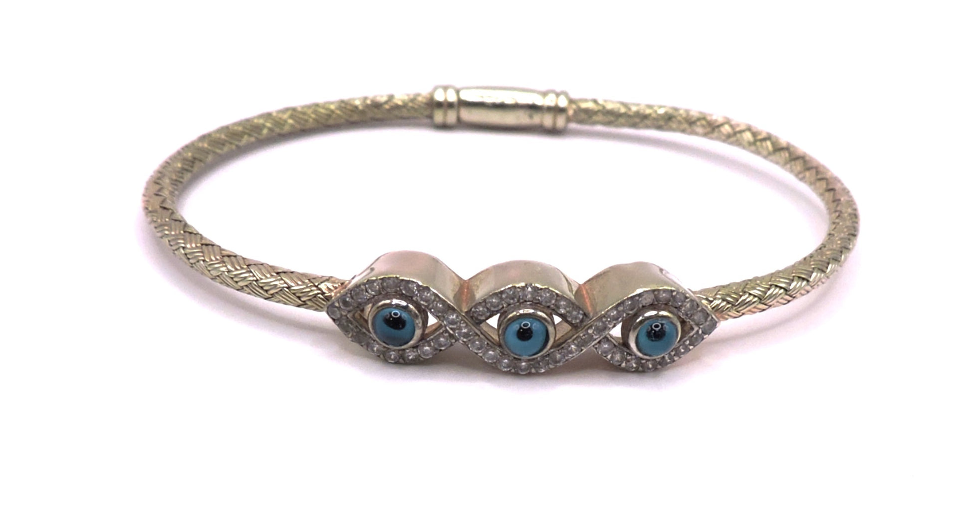 3-eye bracelet in light gold-plated silver, accented with zircons.