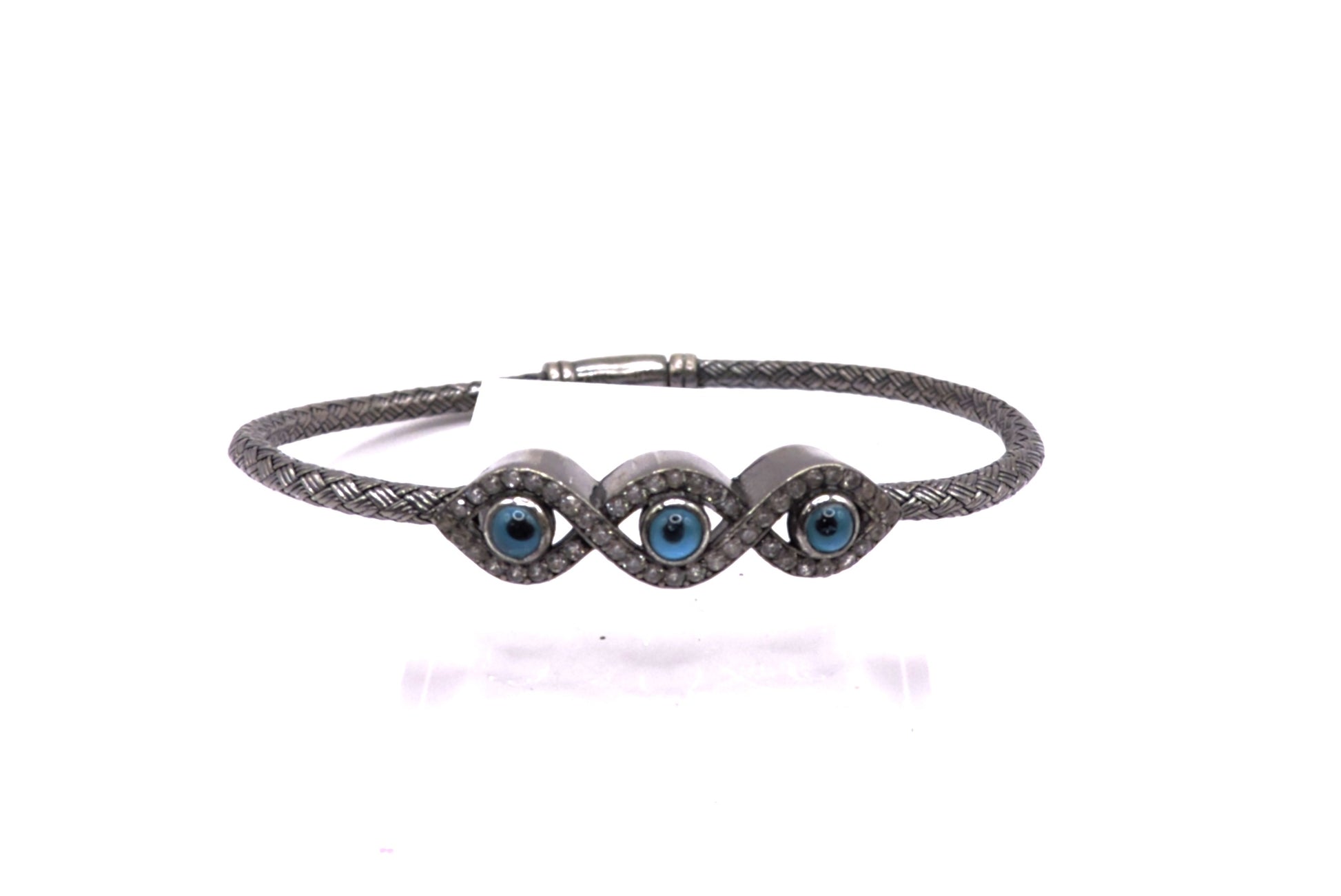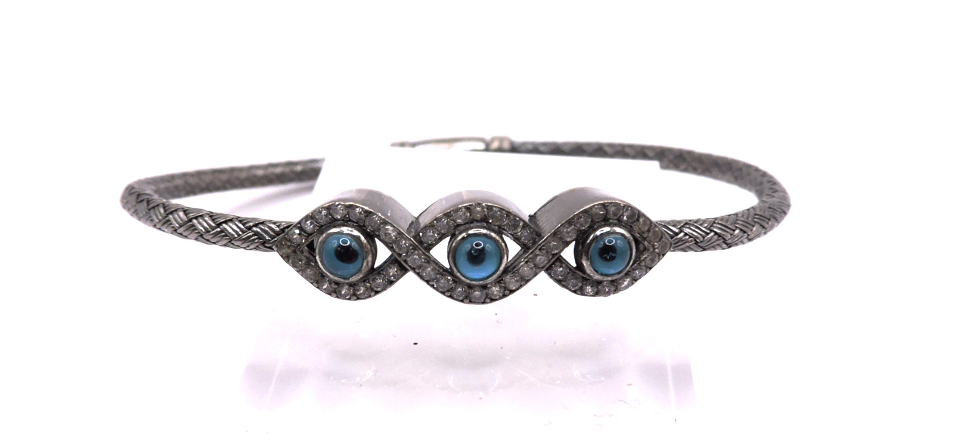 Black silver bracelet with three eye motifs and sparkling zircons.