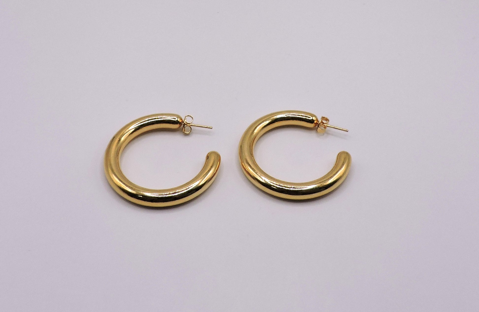 Gold-filled hollow round Hoop Harrings offering lightweight comfort, durable quality, and timeless versatility for effortless elegance.