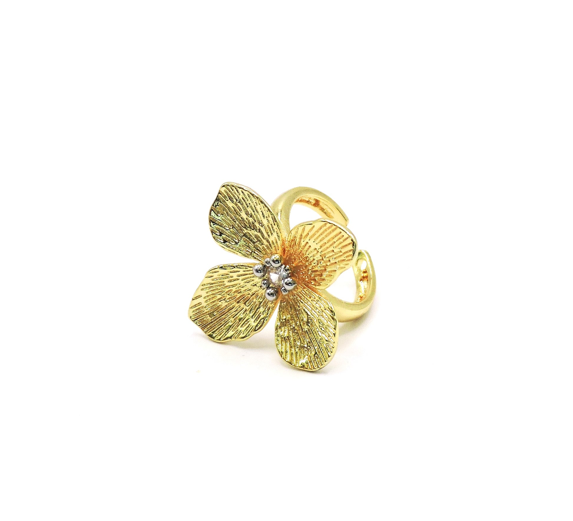 Delicate flower-shaped ring featuring a gold-filled zircon center—charming, feminine, and radiant.
