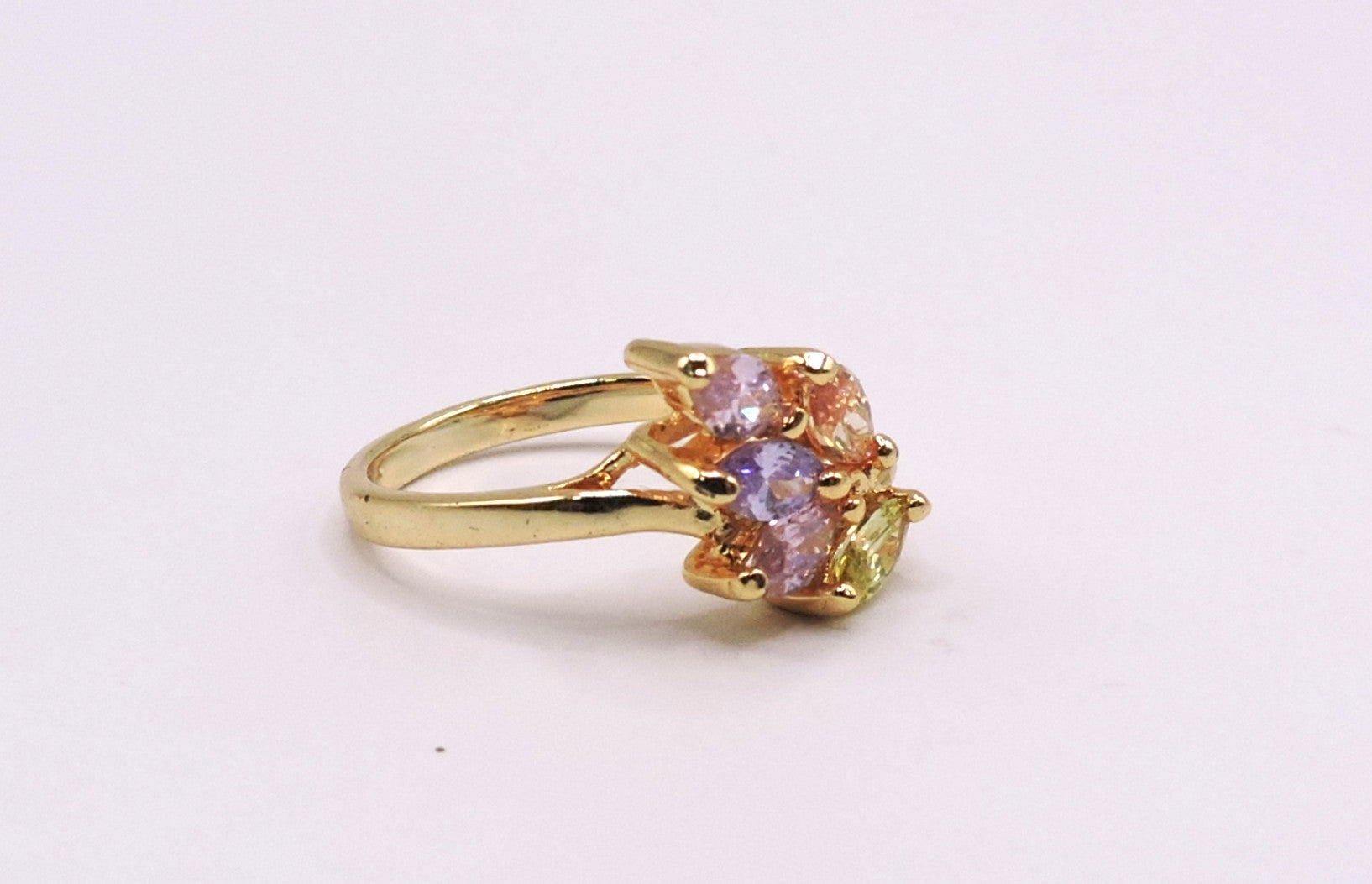 Gold-filled ring with colored zircons – Elegant gold-filled ring adorned with vibrant multicolored zircons for a playful yet refined look.