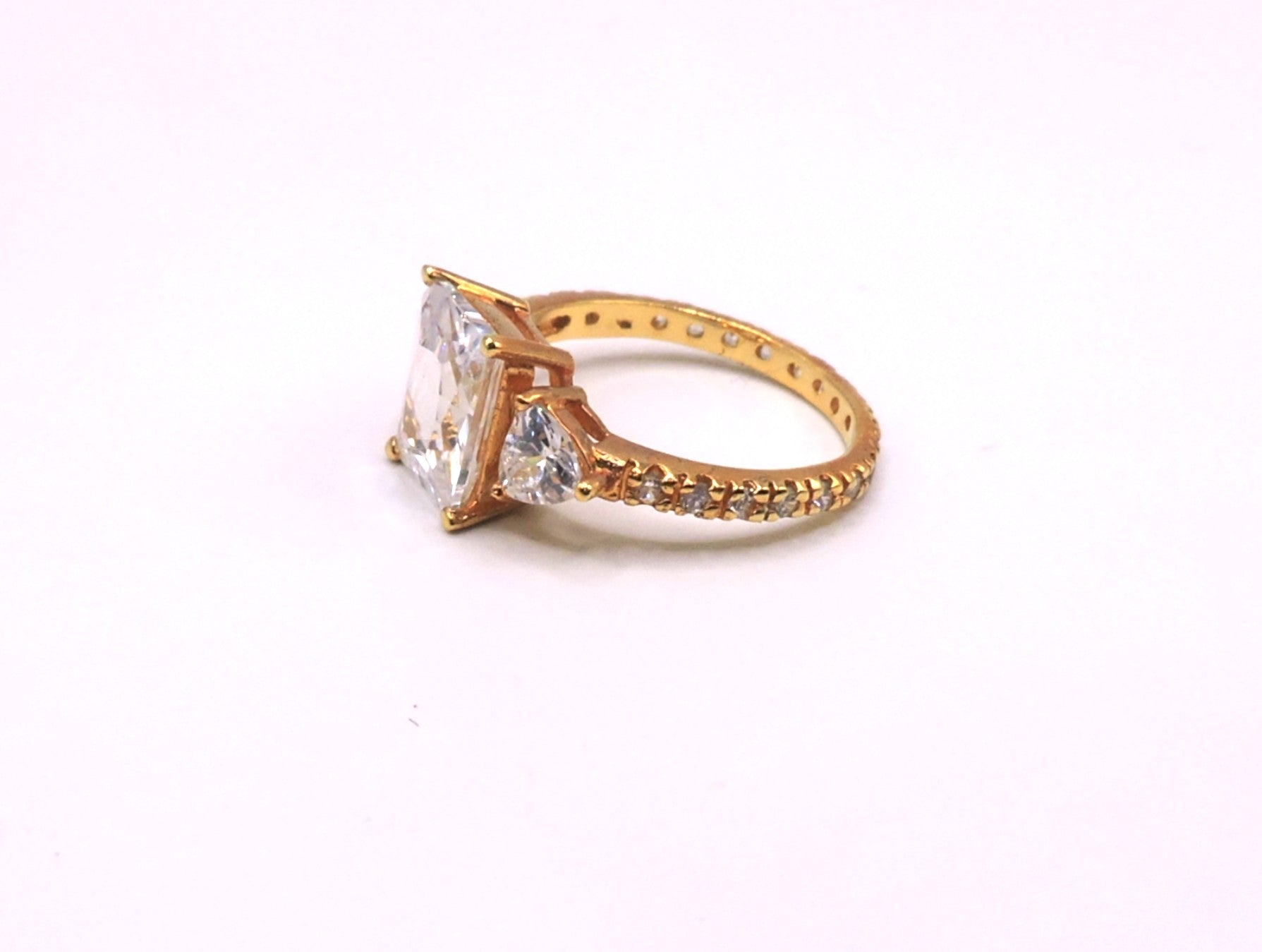 Gold-filled ring with rectangular zircon and surrounding band – Elegant gold-filled ring showcasing a central rectangular zircon, framed by a shimmering surrounding band for added brilliance and style.
