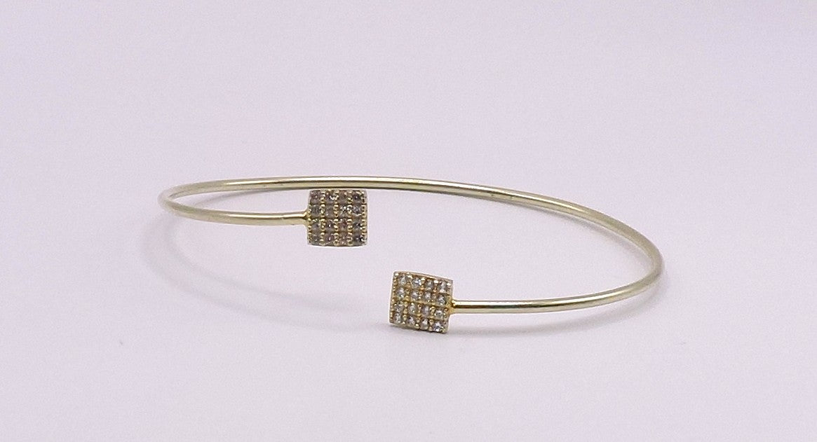 Gold-plated silver cuff bracelet embellished with square-shaped zircons for a bold and elegant statement. Ask ChatGPT