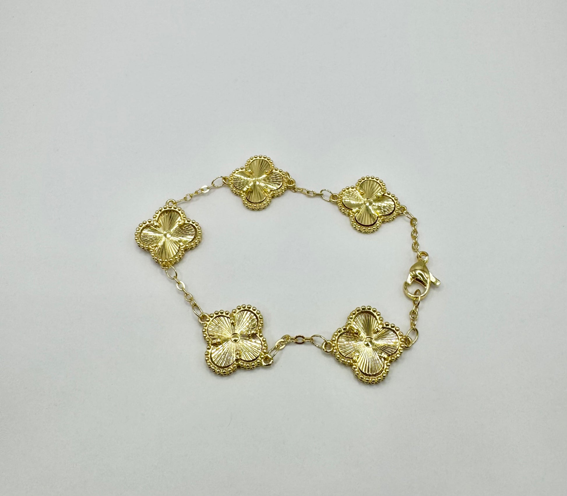 A dainty gold-filled bracelet featuring a charming clover charm, symbolizing luck and positivity. Lightweight, tarnish-resistant, and perfect for everyday wear or as a thoughtful gift. Designed for effortless elegance.
