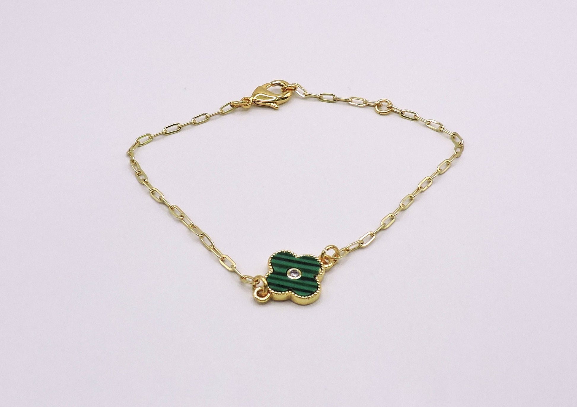 Elegant and meaningful, this gold-filled bracelet features a delicate clover charm—symbolizing luck and grace—perfect for everyday wear or as a thoughtful gift.