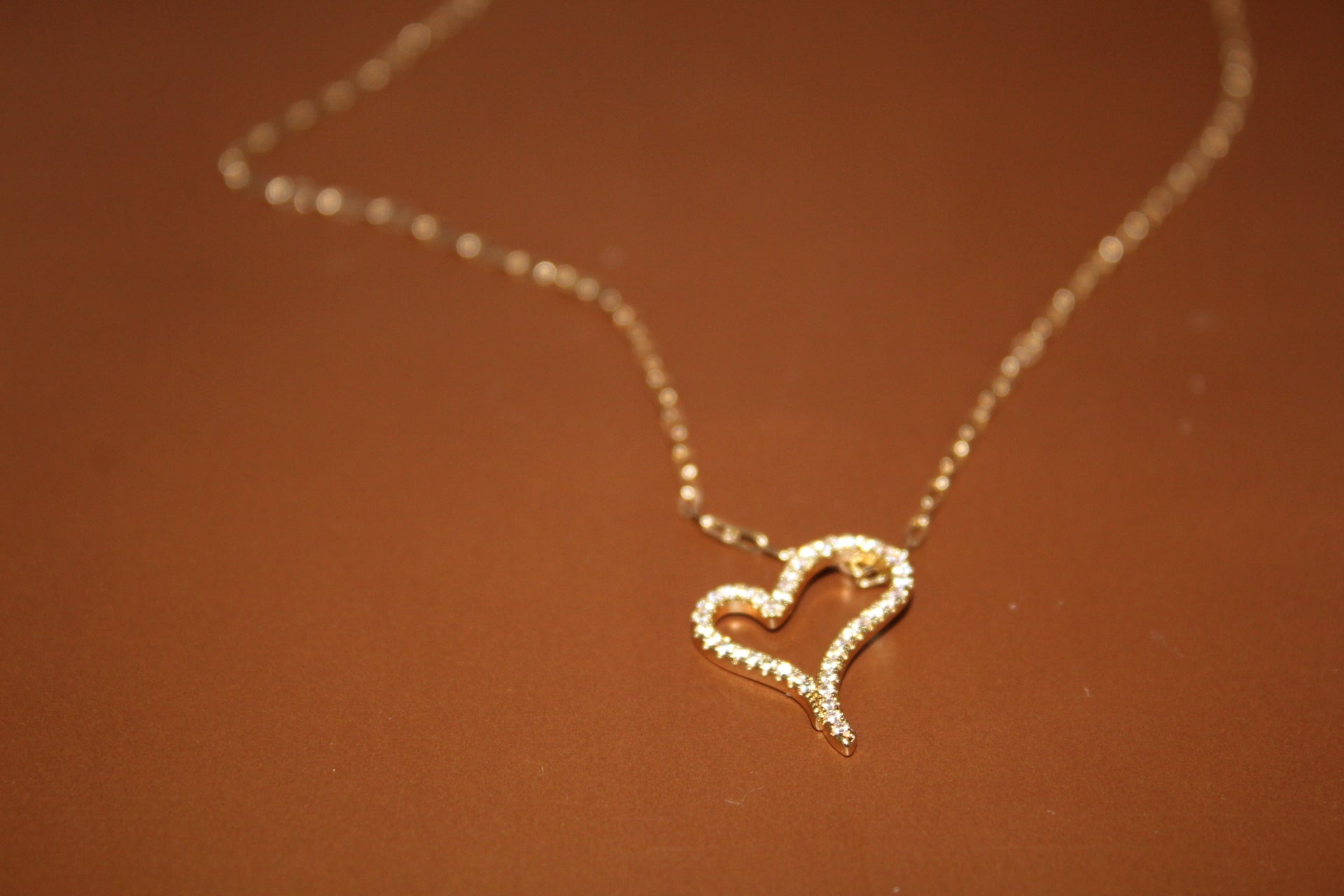 Elegant heart necklace featuring sparkling zircon stones, crafted in high-quality gold-filled metal. A timeless piece perfect for adding a touch of romance and shine to any outfit.