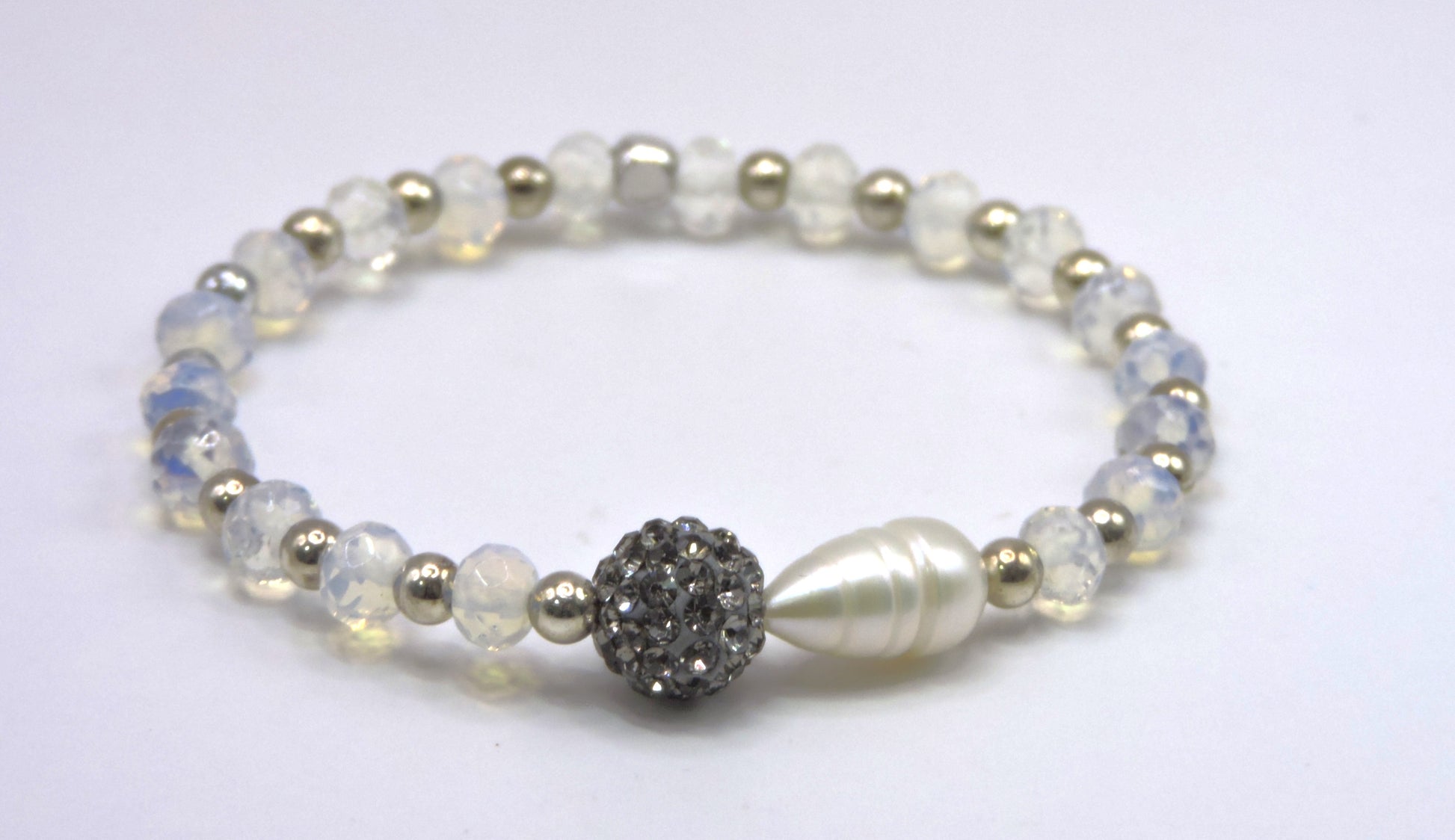 Elegant quartz bracelet accented with polished silver beads for a refined, timeless look.