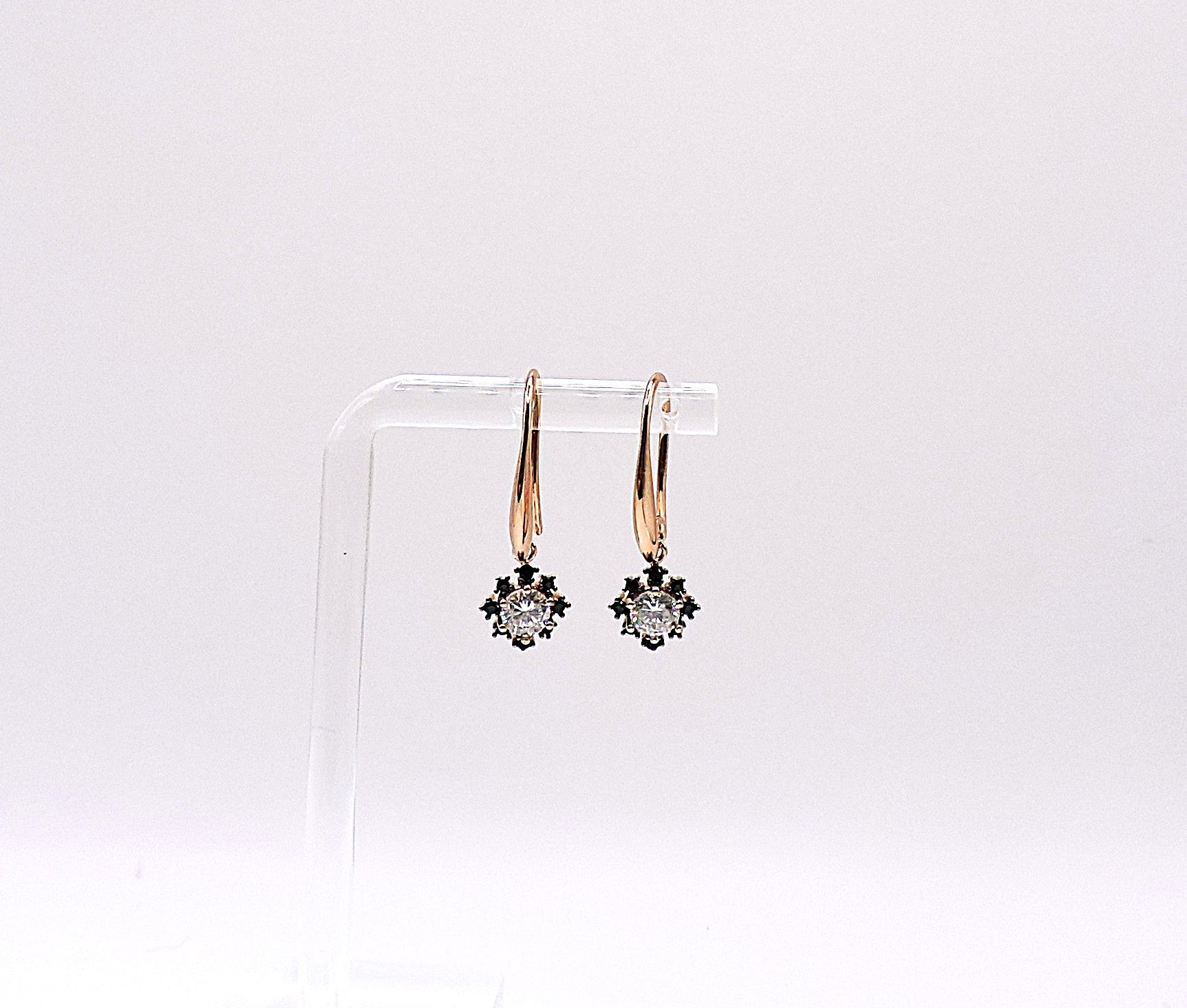 Rose gold silver earring with zircon and black zircons with gold-filled support