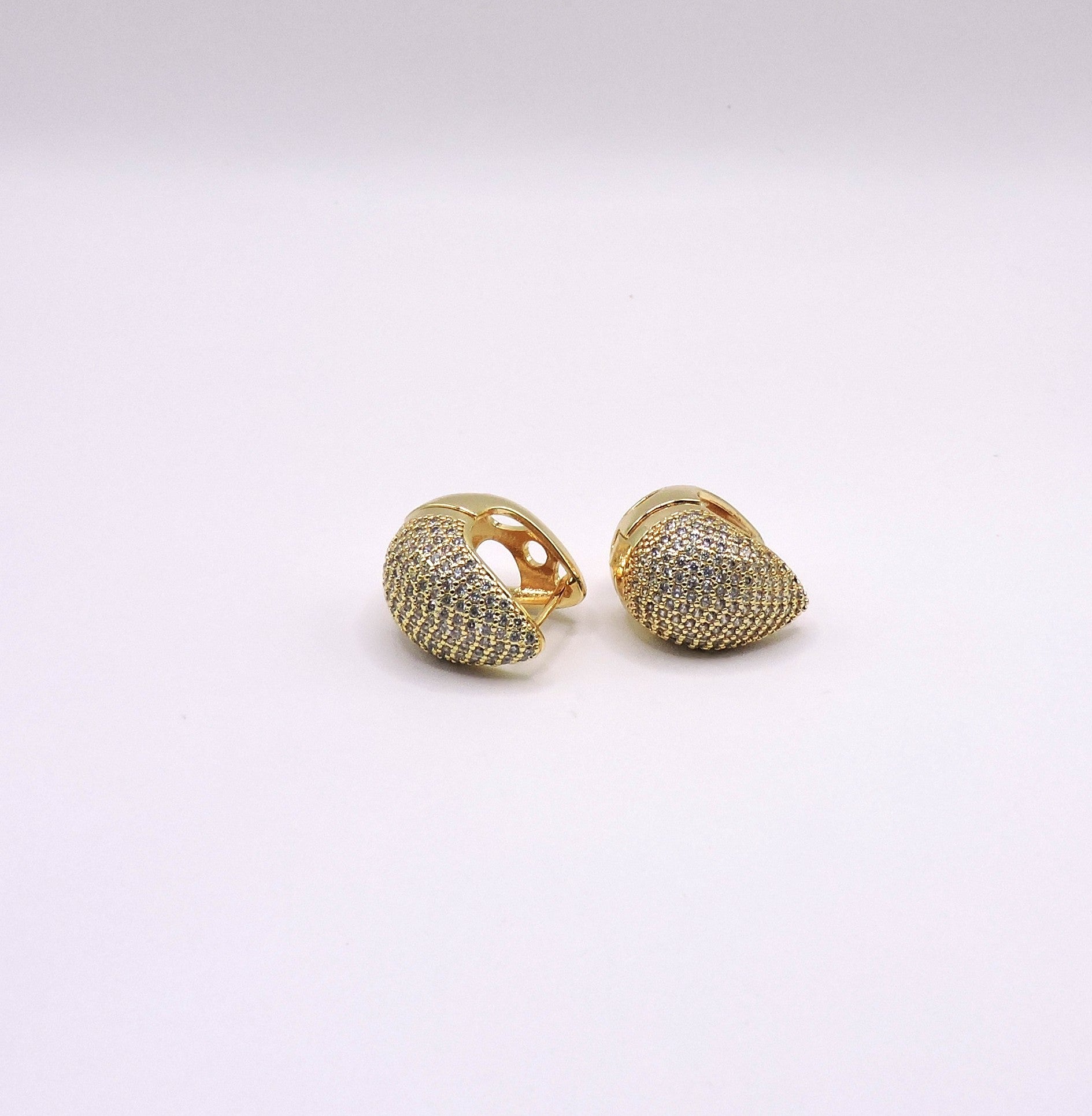 Delicately refined, this short micropavé teardrop earring in gold-filled finish features sparkling stones in a compact, elegant design—perfect for subtle glamour and everyday sophistication.