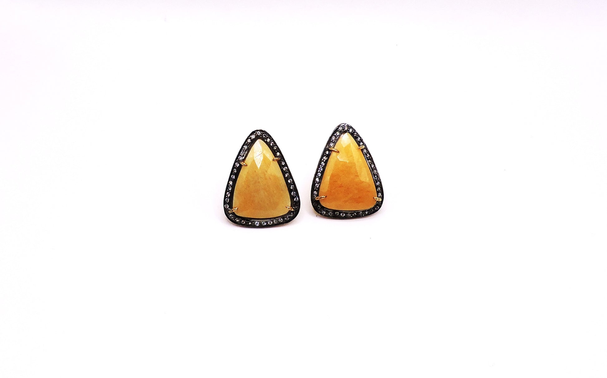 Silver and zircon earrings with semiprecious yellow stone