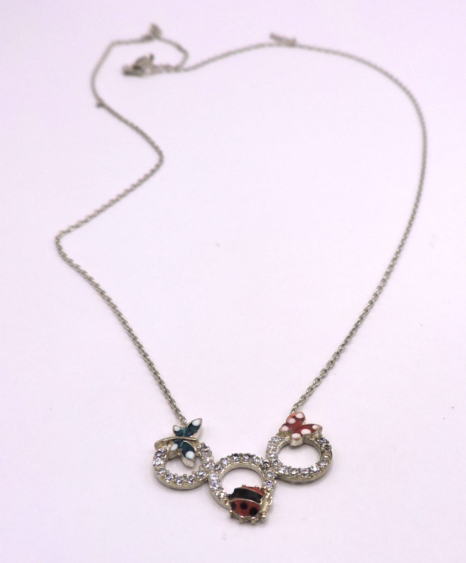 A charming silver necklace adorned with tiny, detailed bug motifs, adding a playful and whimsical touch to your style.
