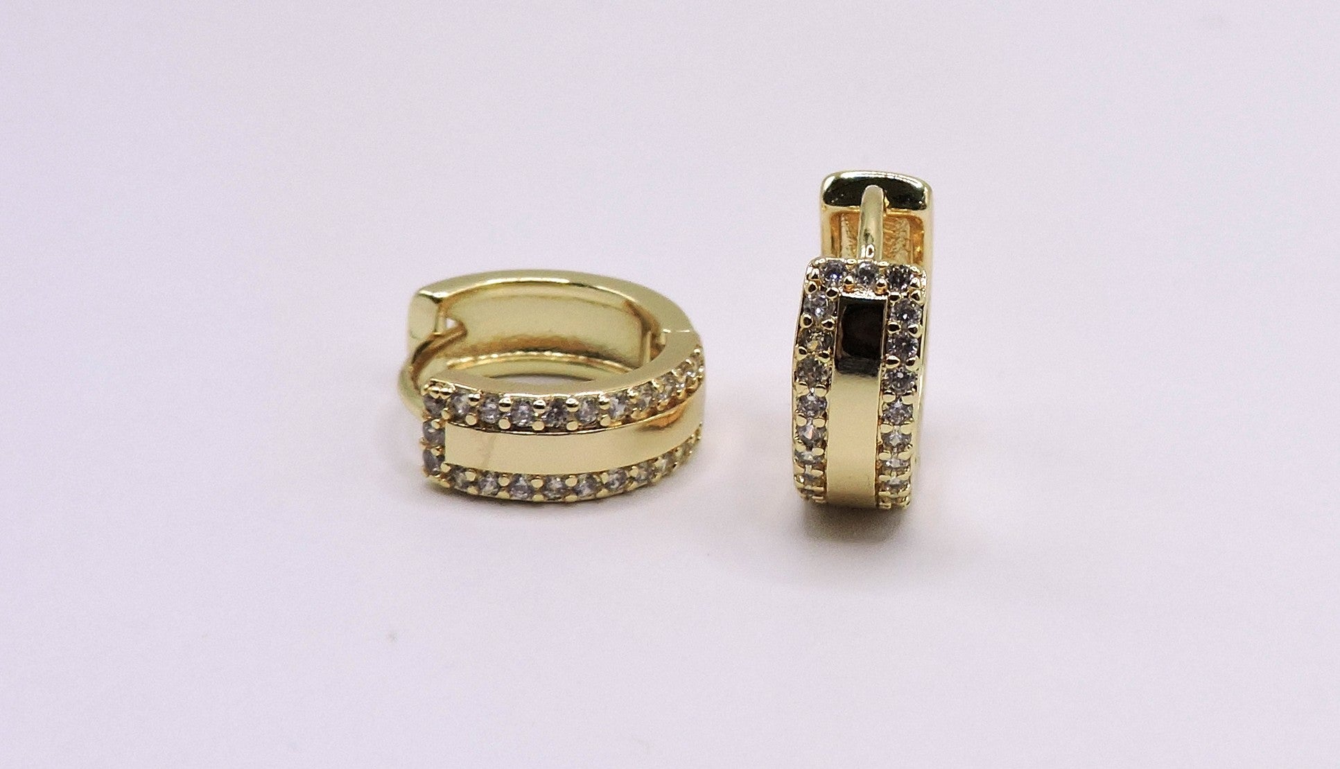 Small Hoop Earring with Micropavé and Gold-Filled Lines: Elegant small hoop featuring sparkling micropavé accents and sleek gold-filled lines for a modern, refined look.