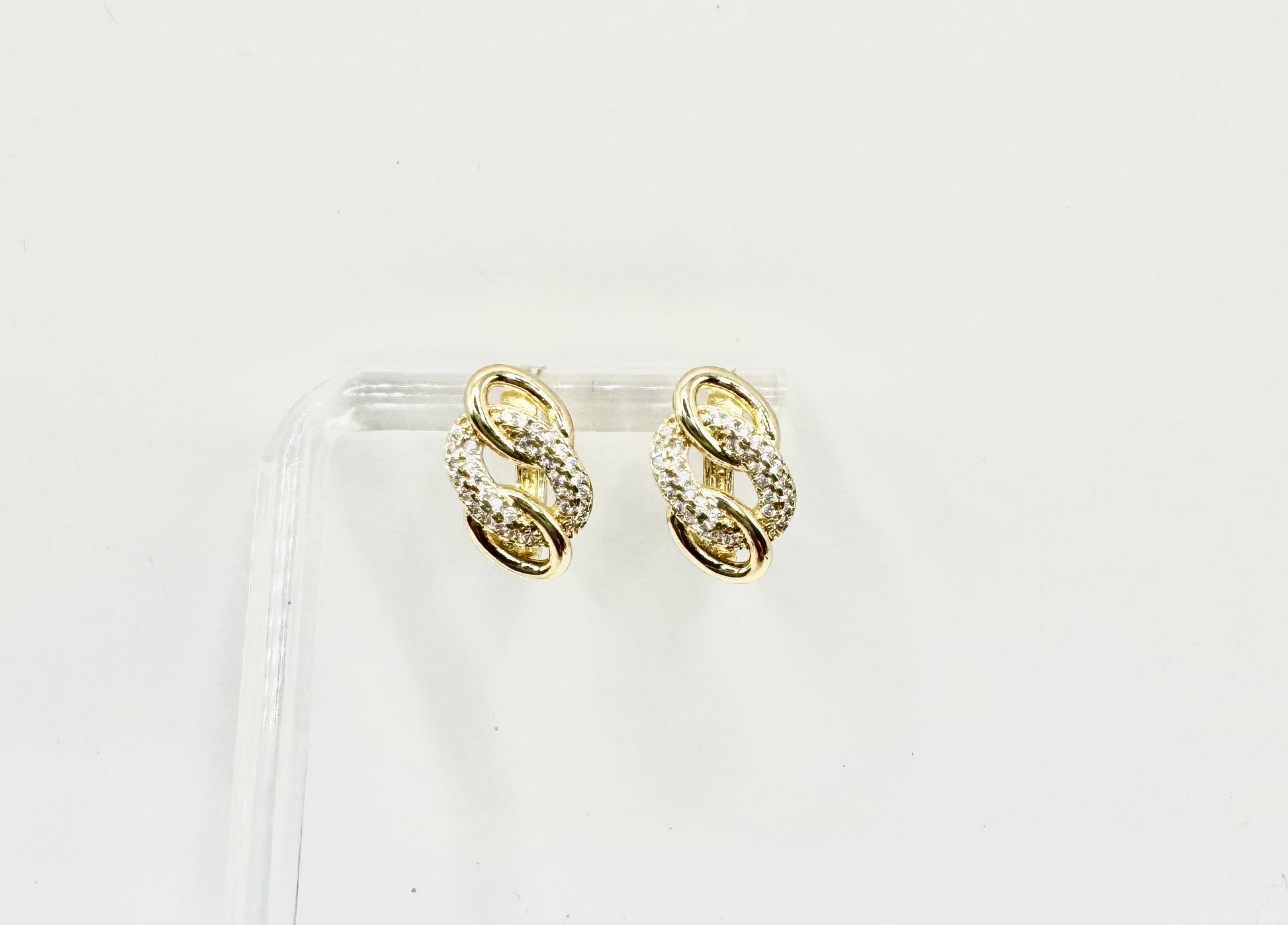 "Small gold-filled chain-style earrings featuring delicate micropave accents, blending textured detail with timeless sparkle for lightweight, durable elegance. Perfect for versatile day-to-night styling."
