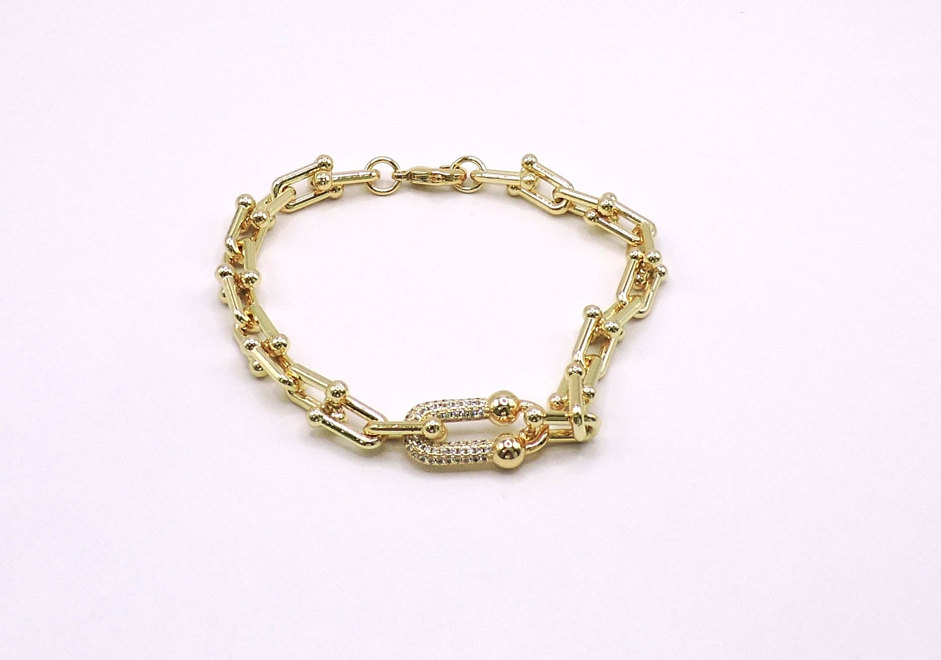 Bold yet refined, this U-link bracelet is crafted in 14k gold-filled metal and accented with sparkling micropavé cubic zirconia. A modern statement piece that's hypoallergenic, tarnish-resistant, and perfect for elevating any look.